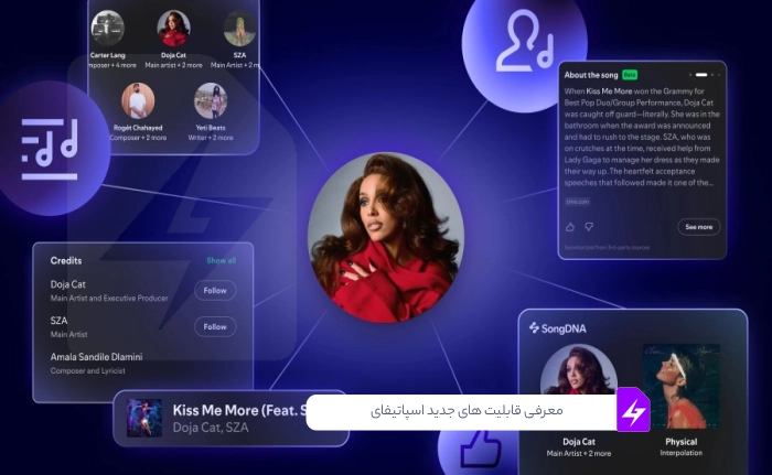 اسپاتیفای روز چهارشنبه از مجموعهای از قابلیتهای جدید اسپاتیفای رونمایی کرد که با هدف معرفی و برجستهسازی افراد پشتصحنه موسیقیهای محبوب شما طراحی شدهاند. این افراد شامل تهیهکنندگان، مهندسان صدا، ترانهسراها، همخوانها و سایر عوامل دخیل در تولید یک اثر هستند. علاوه بر این، این شرکت ابزارهایی را منتشر خواهد کرد که ارتباط میان آهنگها و منابع الهامبخش آنها را به کاربران نمایش میدهد.